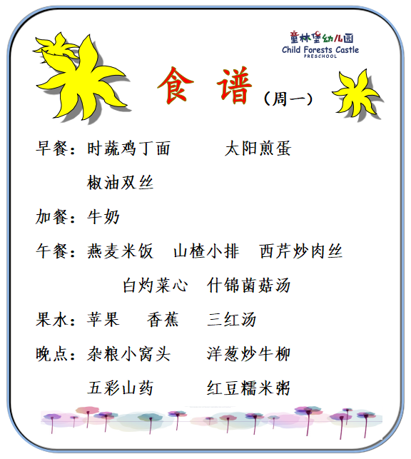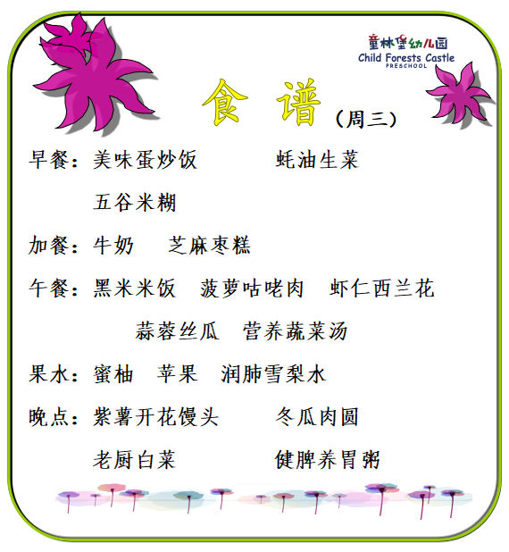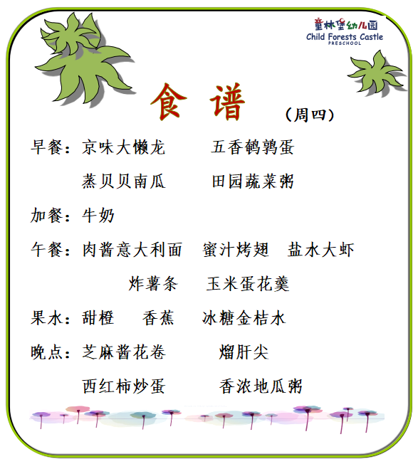 童林堡幼儿园2025年12月22日-12月26日美味食谱