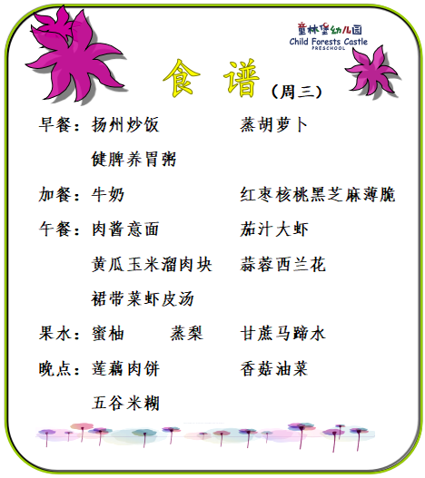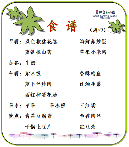 童林堡幼儿园2026年1月5日——1月9日美味食谱