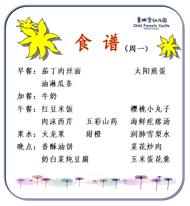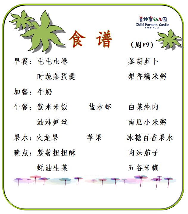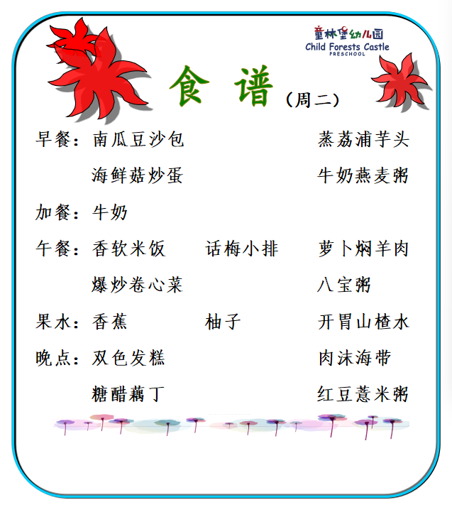童林堡幼儿园2026年01月12日-01月16日美味食谱
