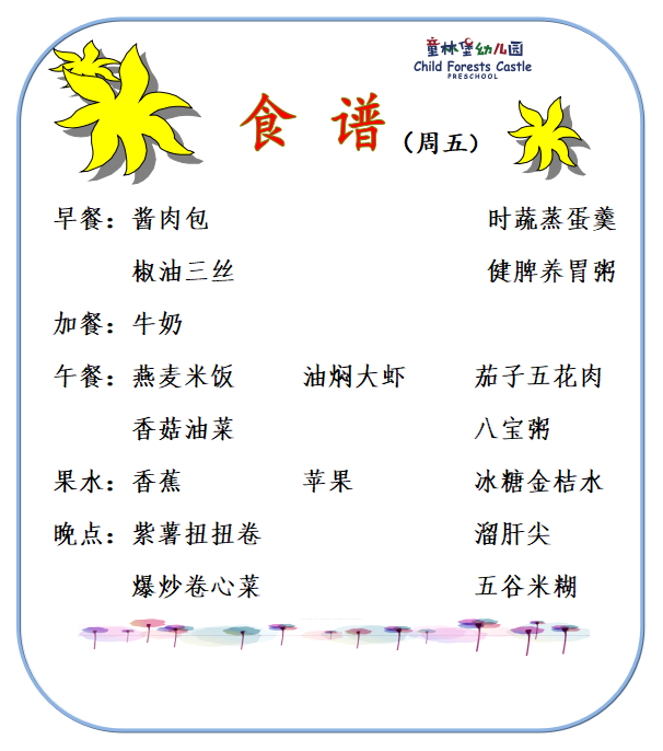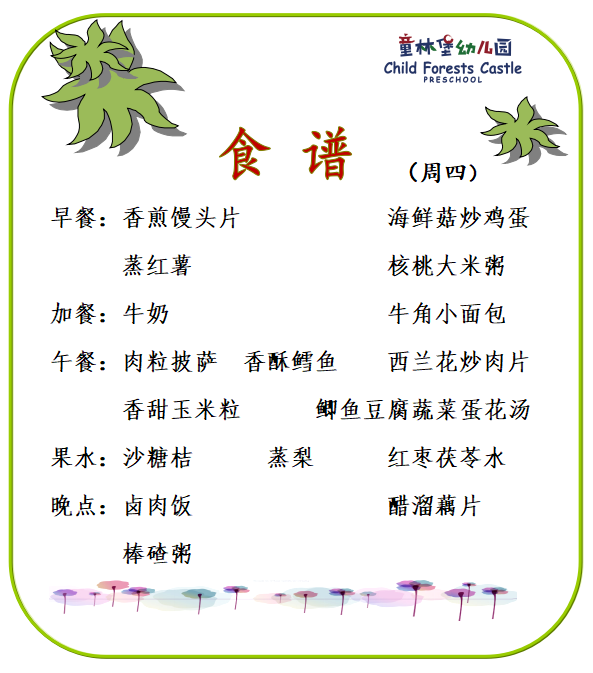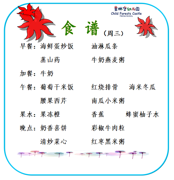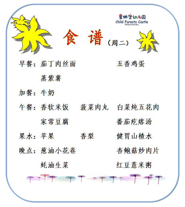 童林堡幼儿园2026年2月24日-2月28日美味食谱
