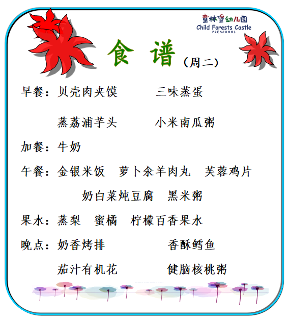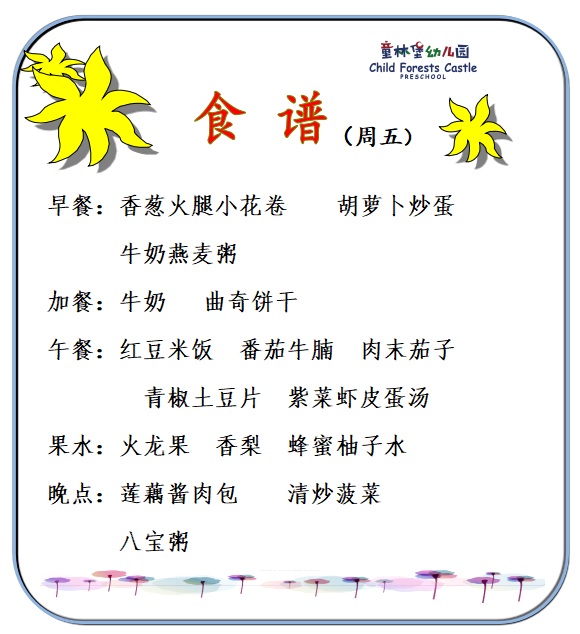 童林堡幼儿园2025年12月22日-12月26日美味食谱