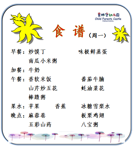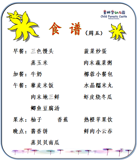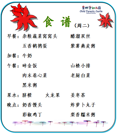 童林堡幼儿园2026年1月5日——1月9日美味食谱