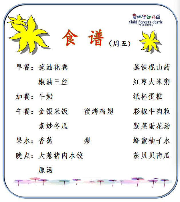 童林堡幼儿园2026年01月12日-01月16日美味食谱