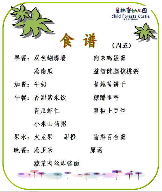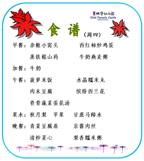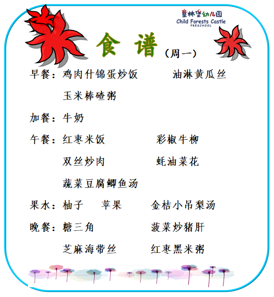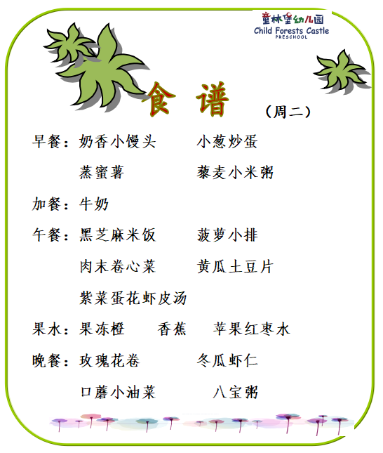 童林堡幼儿园2026年2月2日--2月6日美味食谱