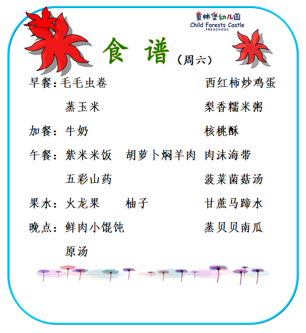 童林堡幼儿园2026年2月24日-2月28日美味食谱