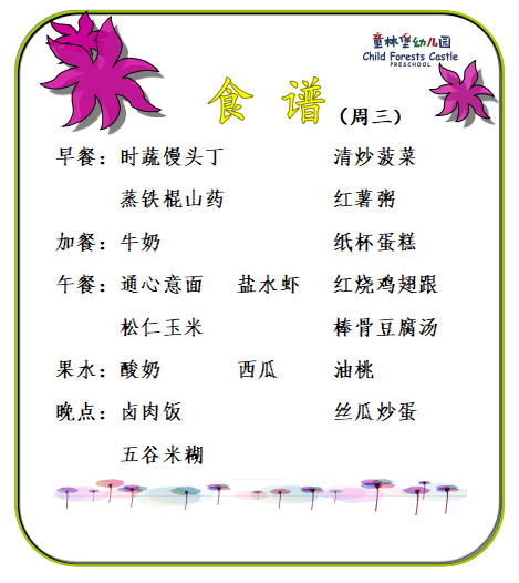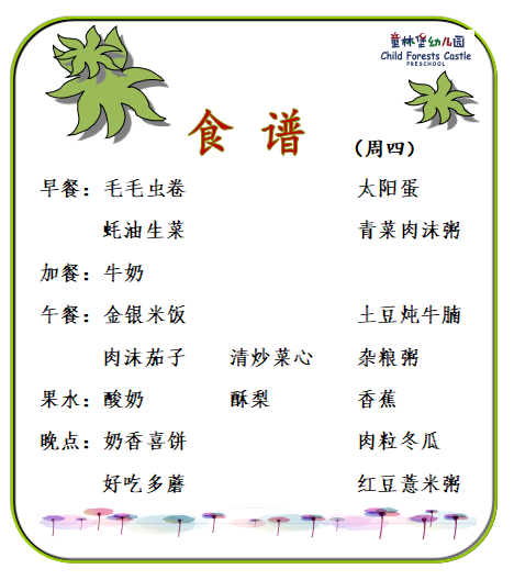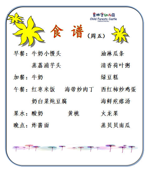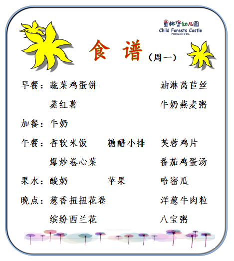 童林堡幼儿园2025年7月14日--7月18日美味食谱