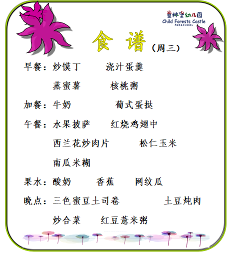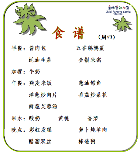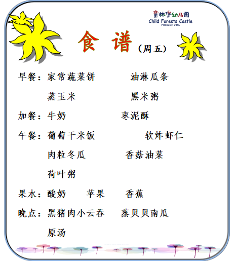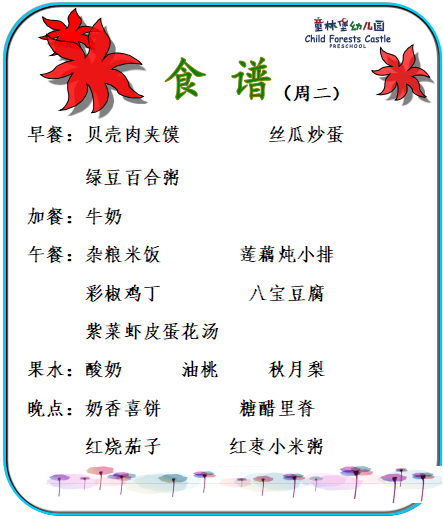 童林堡幼儿园2025年8月18日—8月22日美味食谱
