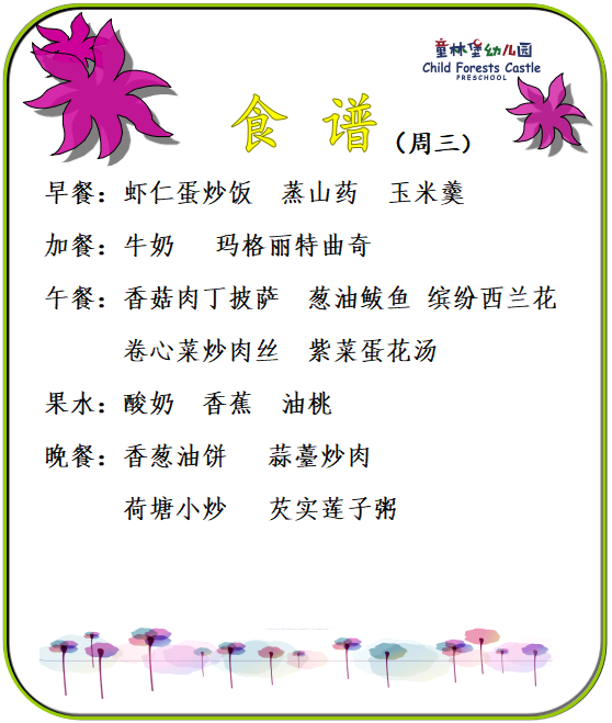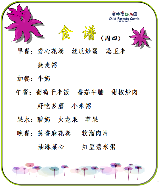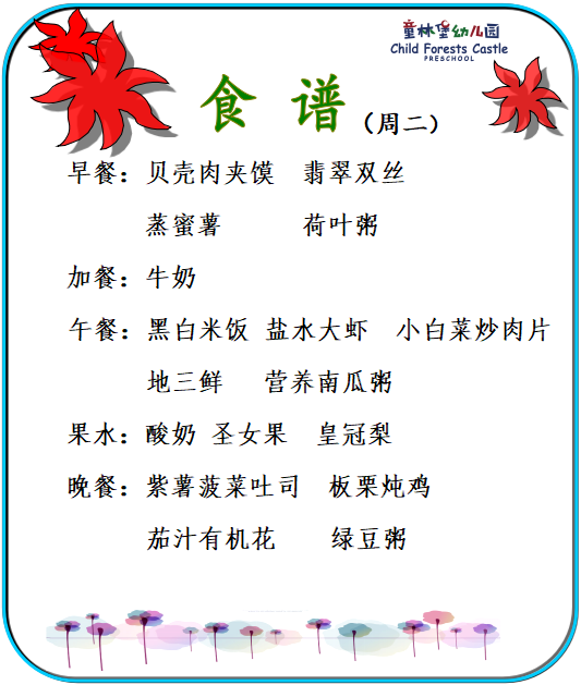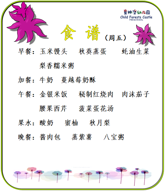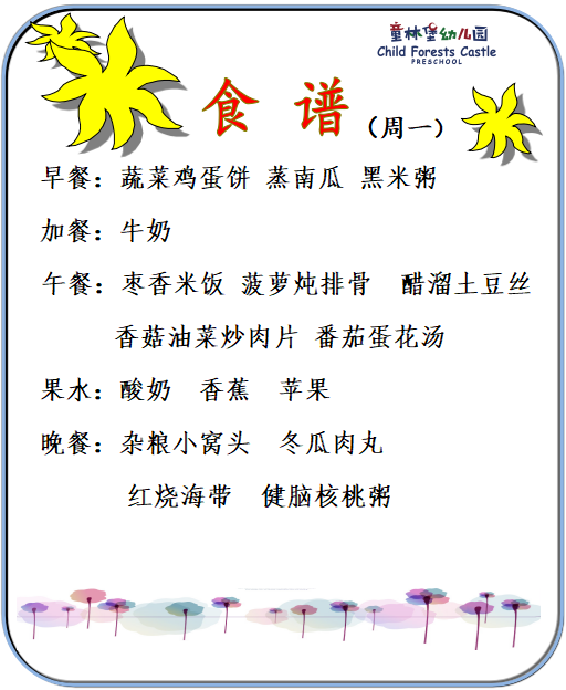 童林堡幼儿园2025年9月1日-9月5日美味食谱