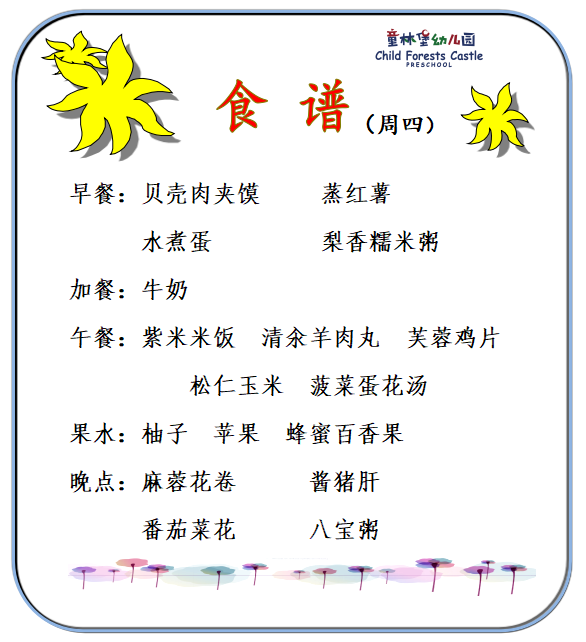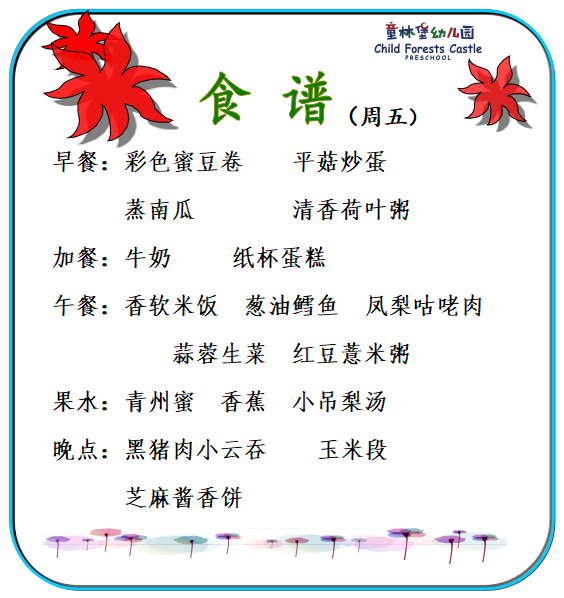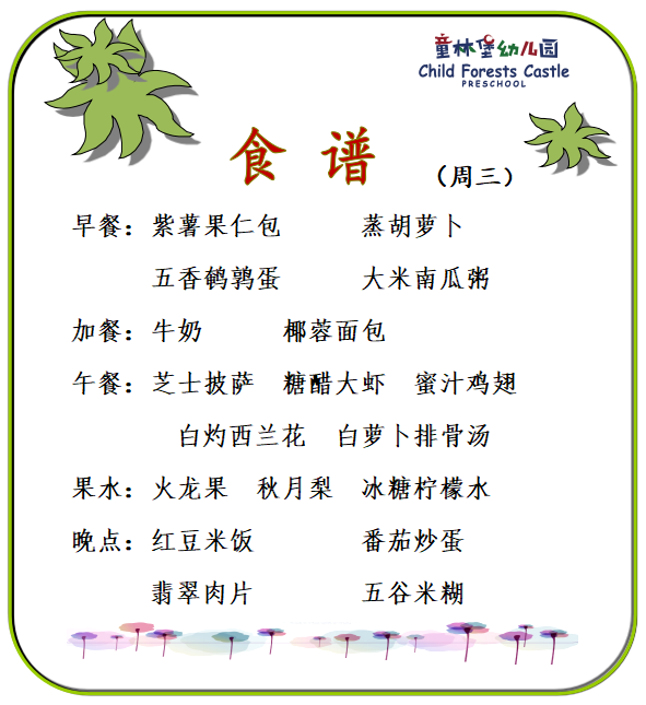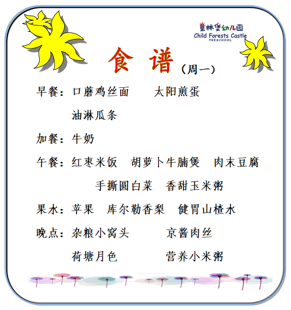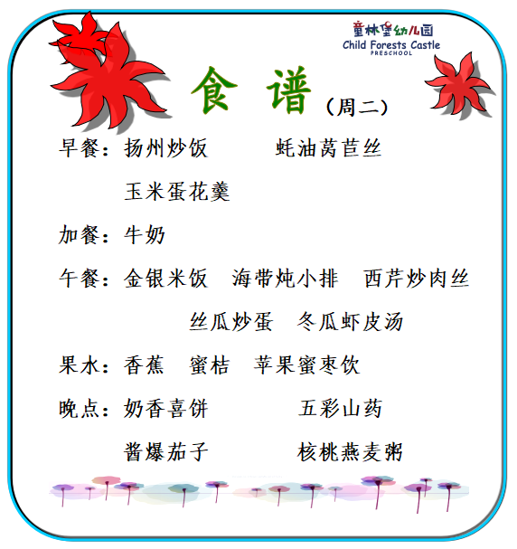 童林堡幼儿园2025年10月13日-10月17日美味食谱